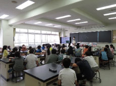 授業は5年生の2時限目に組み込まれ、2階の理科室で行われました。先生に今回の授業を担当する3つの団体をご紹介頂いた後、市民団体からは「牛乳パックリサイクルの意義」が地球温暖化や脱炭素や国連が掲げるSDGsとかかわる身近な課題として判りやすく説明され、リサイクルに取り組んでいる他の学校の様子なども紹介されました。容環協では森林の管理や紙パックの製造にかかわる内容をまとめた「パックン探検隊」をビデオ上映した後、「紙パックリサイクルの大切さ」について講義を行い、この取り組みが、循環型社会への貢献、ごみの減量、二酸化炭素の削減や汚染の防止につながることを紹介し、川崎市には立地的にも行政的にも紙パックをリサイクルできる仕組みが整っているので、紙パックのリサイクルに向けて前向きに取り組んで欲しい旨、お願いしました。また、川崎市環境局からは「川崎市のごみ」といったテーマで、市のごみ回収の現状についてご紹介頂き、川崎市は市民の意識が高まっており、他の政令指定都市と比較しても一人当たりのごみの排出量がかなり低いことなどをご説明頂きました。